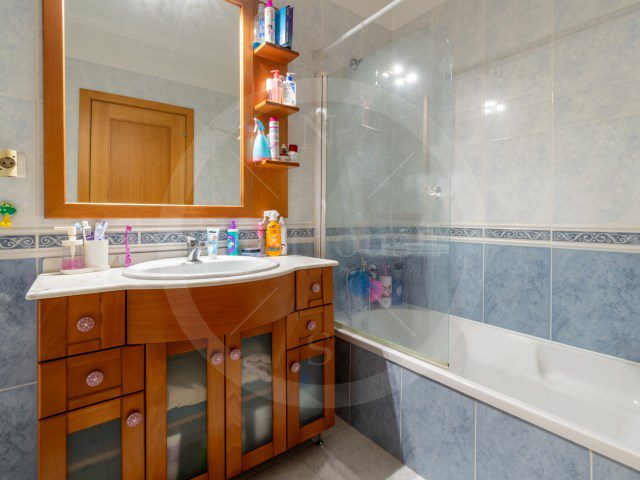 Com a frente voltada a sudeste, o imóvel em apreço tem uma muito bem escalonada separação das zonas social e privada com duas casas de banho (uma, em suíte); a cozinha fica equipada com fogão, forno e máquinas de lavar louça e roupa.