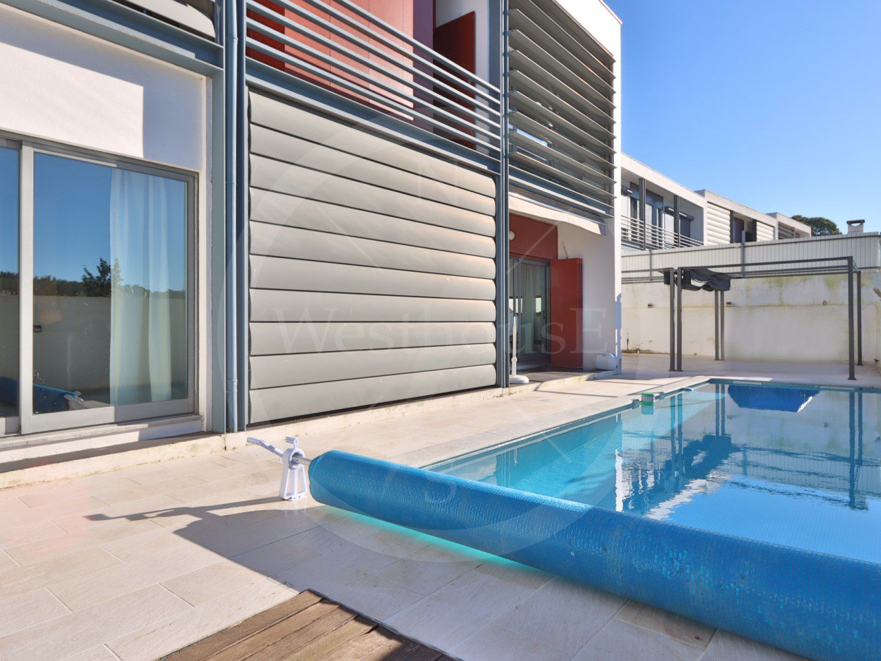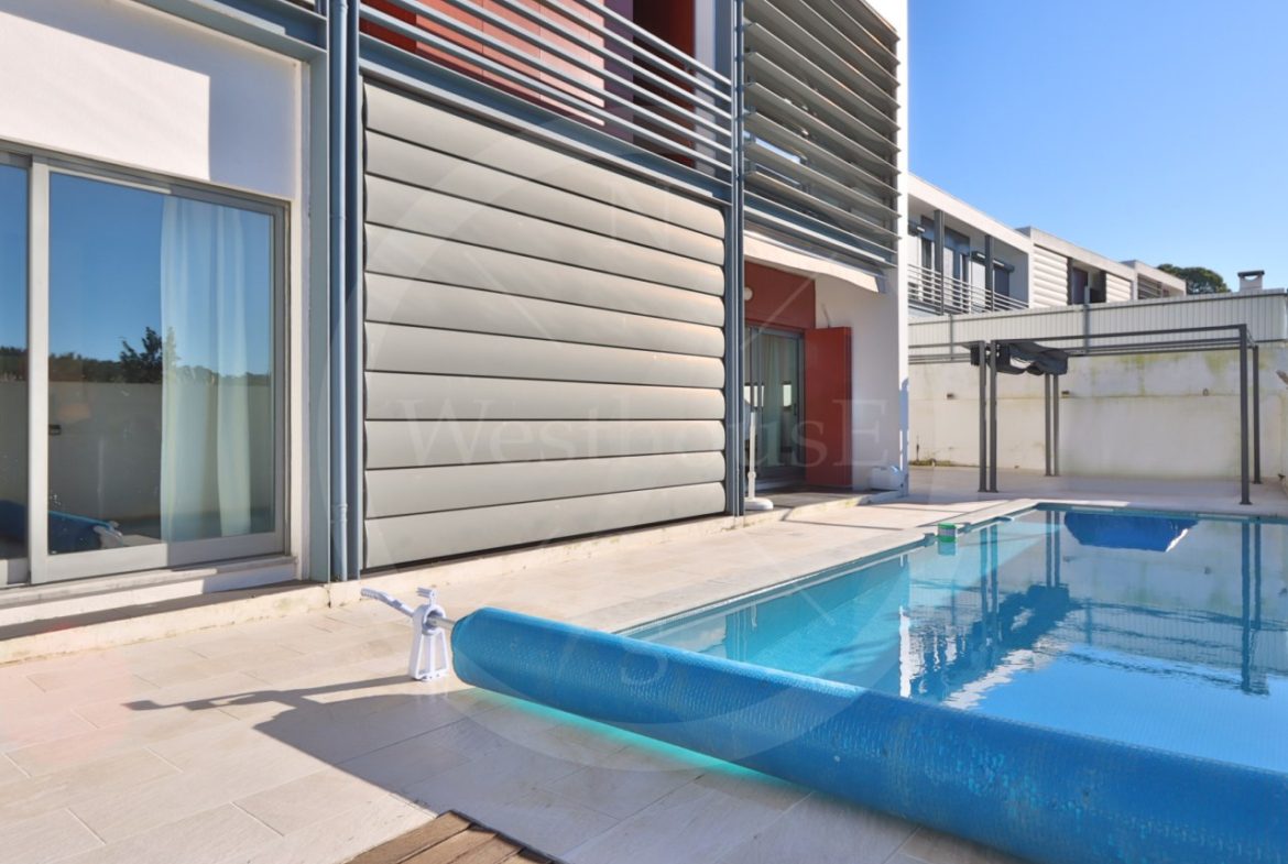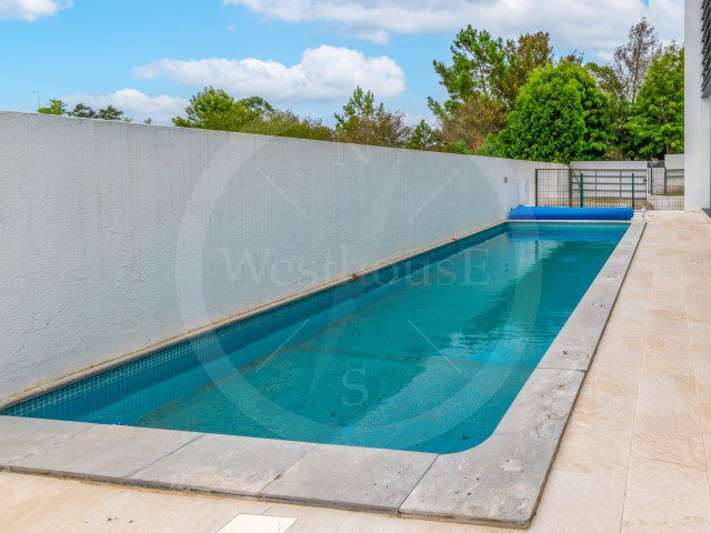 Moradia com cinco quartos e uma área bruta de construção de 337m2, inserida num lote com 482 m2, com piscina e garagem.