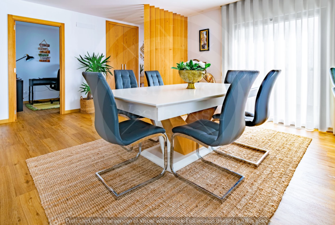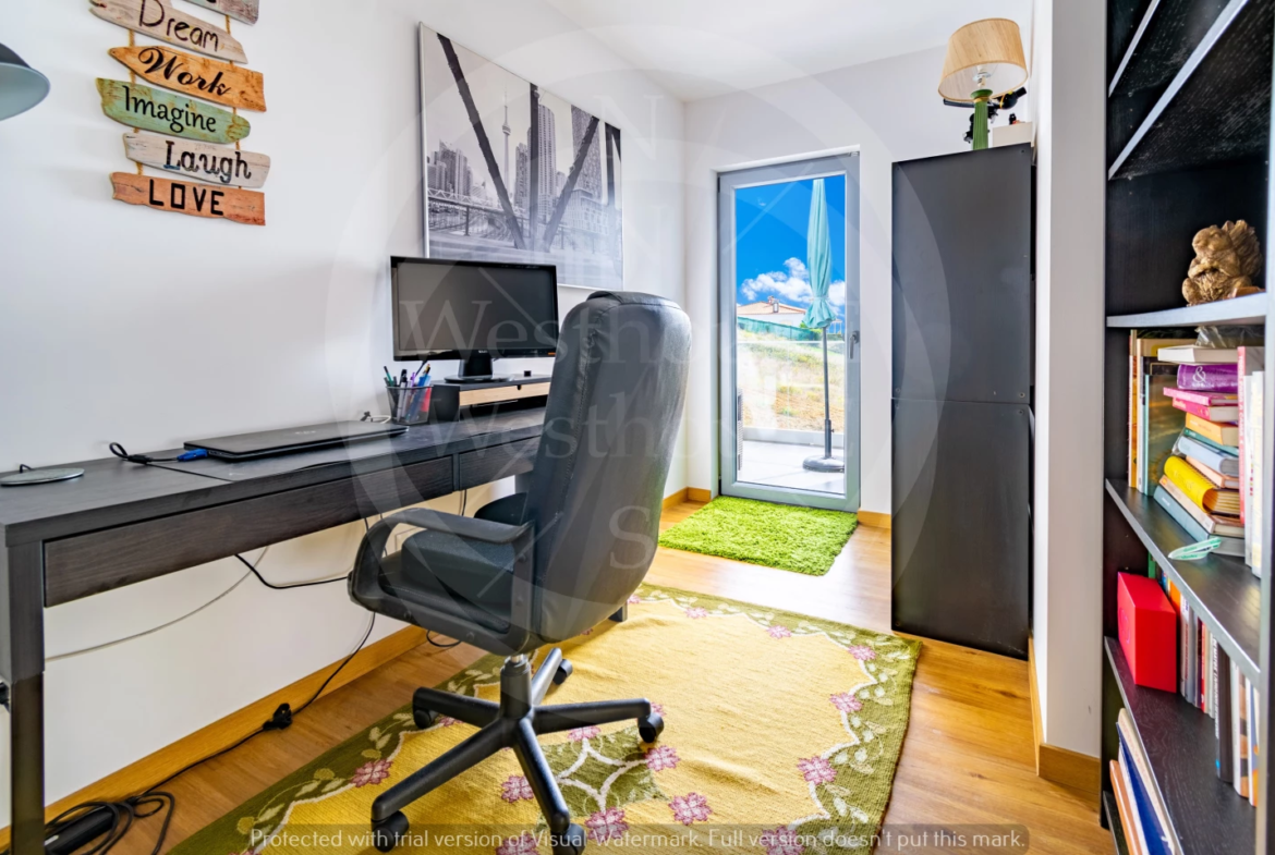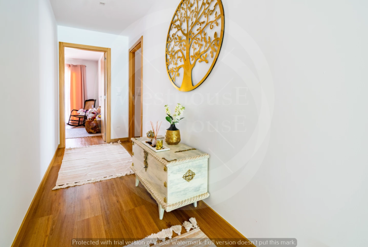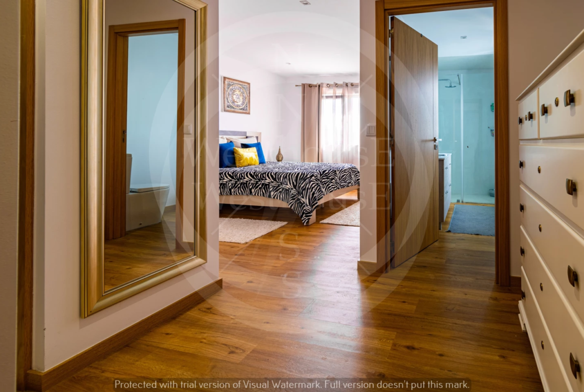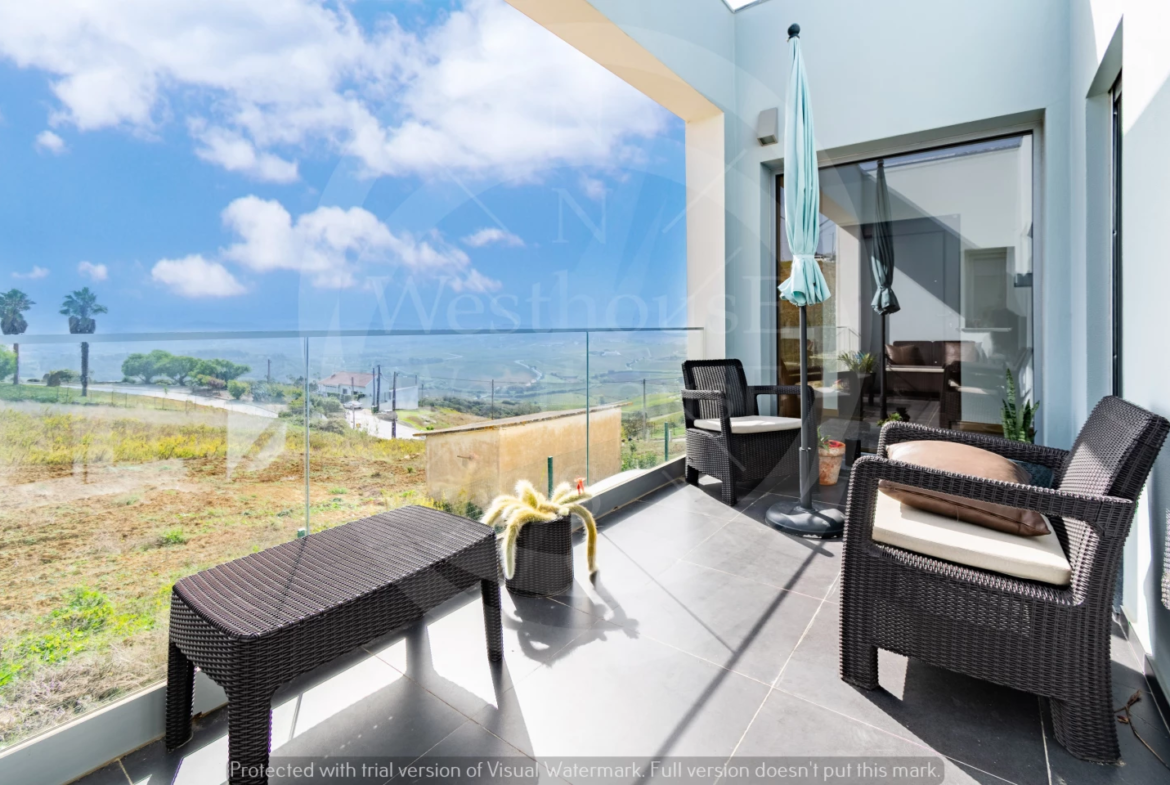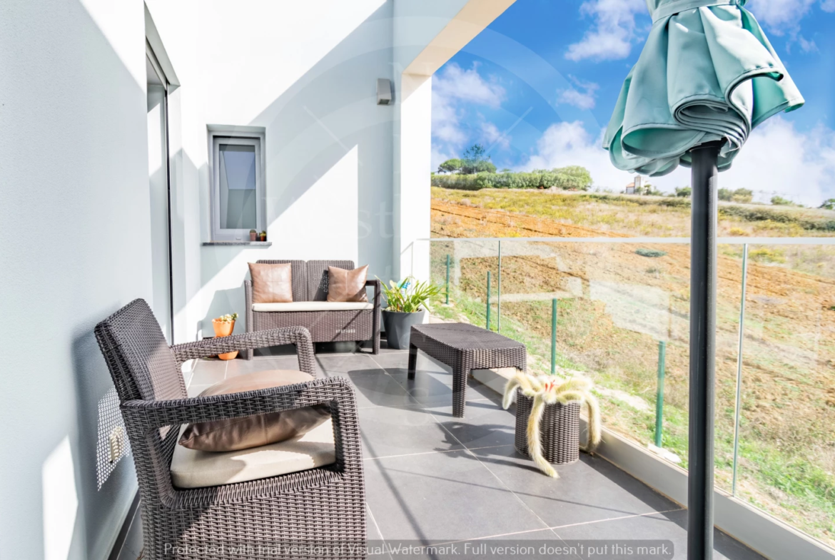 Paredes meias com a tranquila cidade de Torres Vedras, o imóvel – estreado recentemente – beneficia de uma ampla exposição solar; na frente, voltada a sudoeste, pontifica a fantástica vista onde, para além das famosas vinhas da região, se vislumbra o mar.