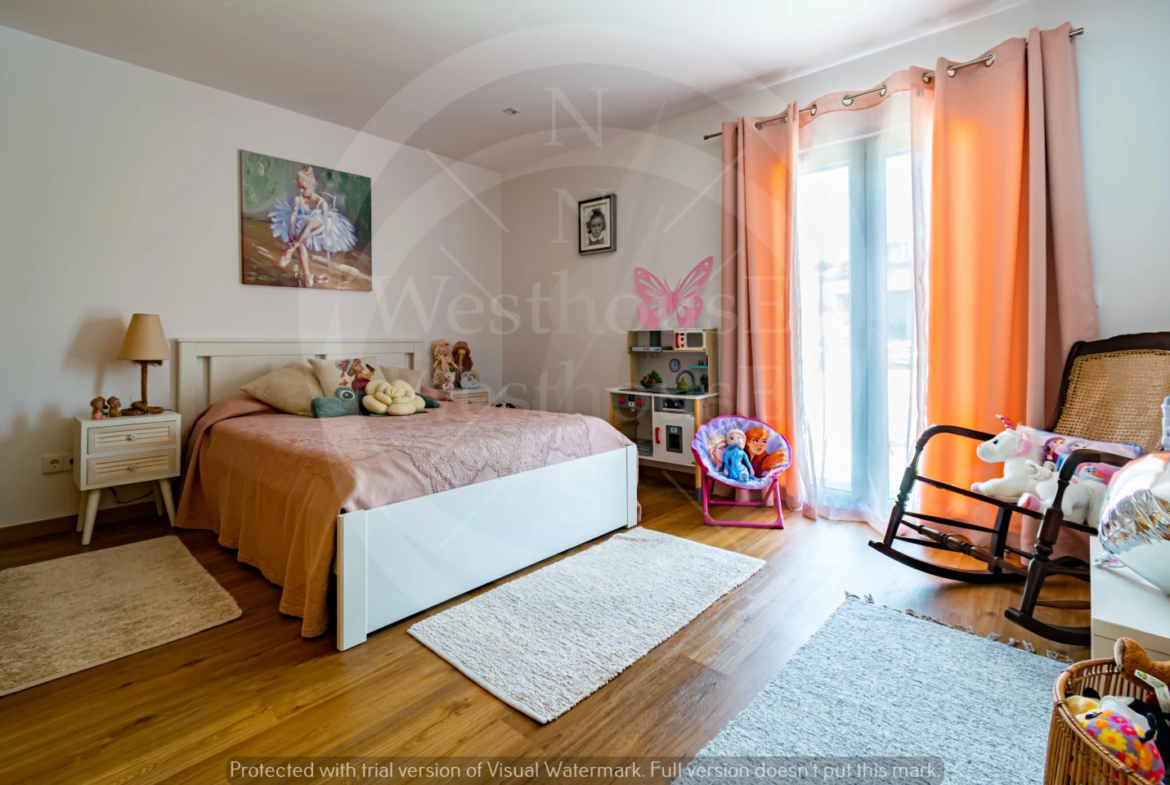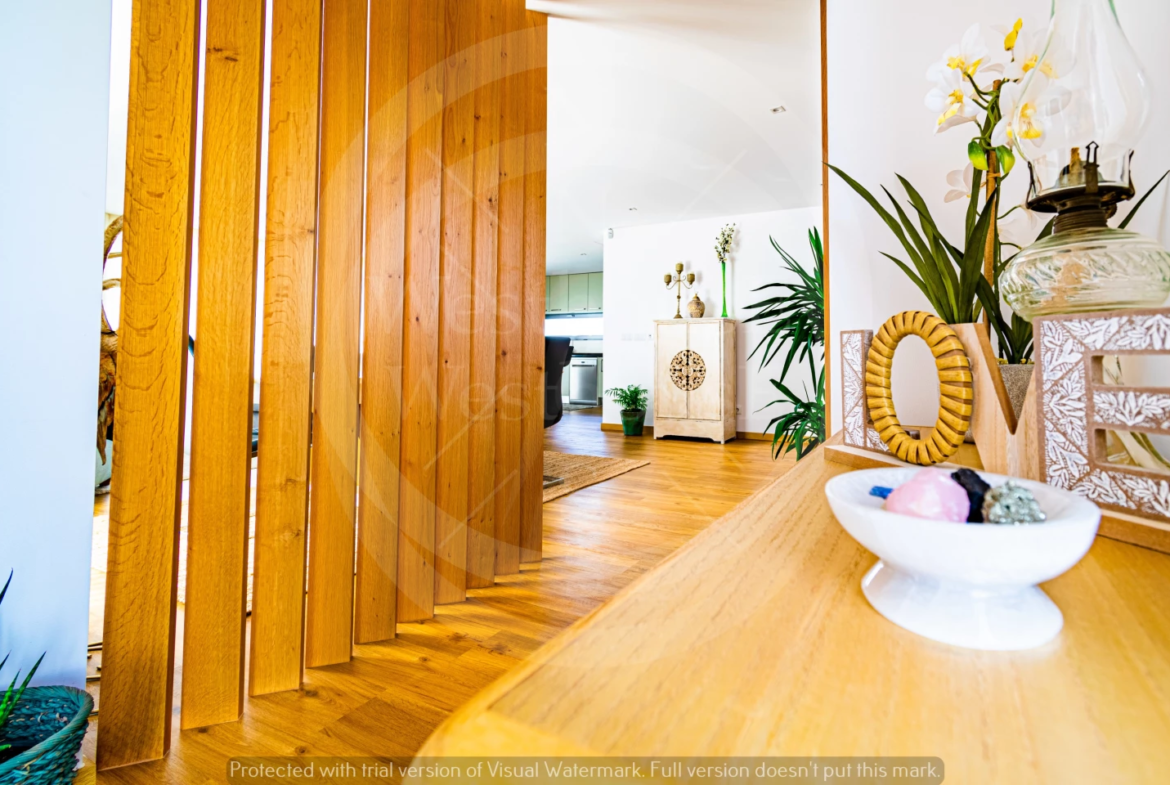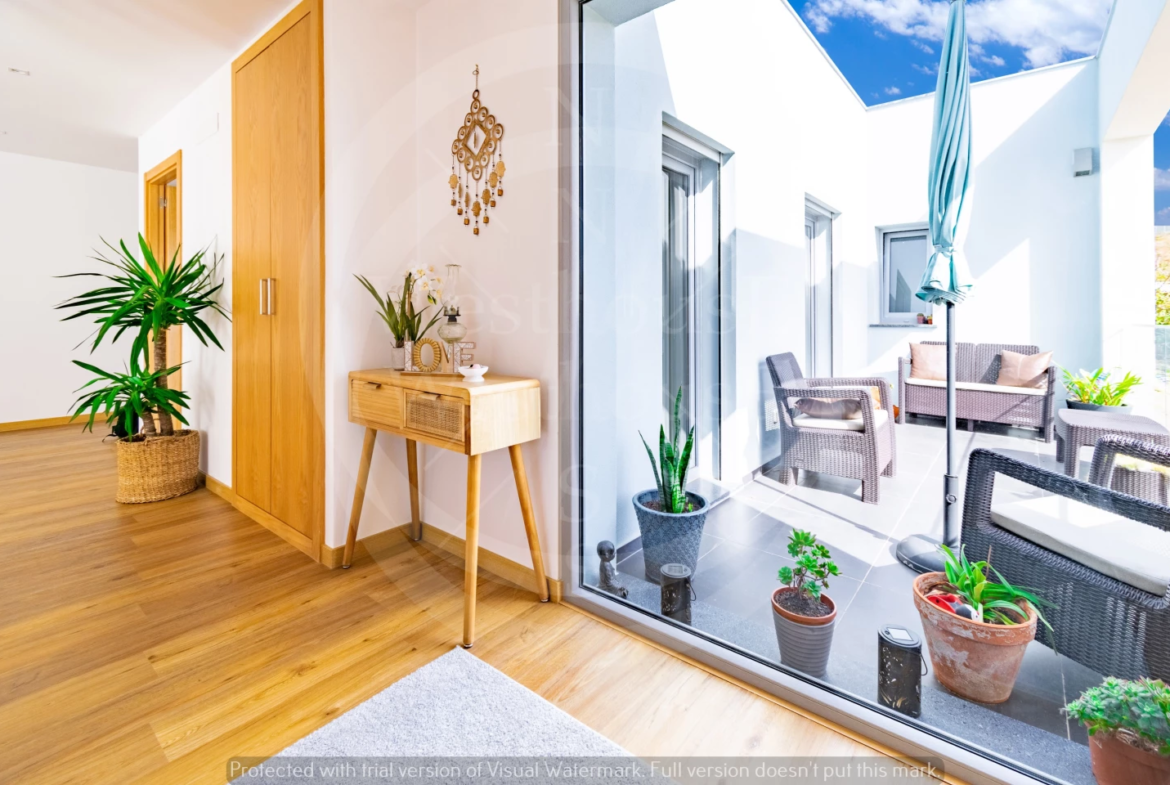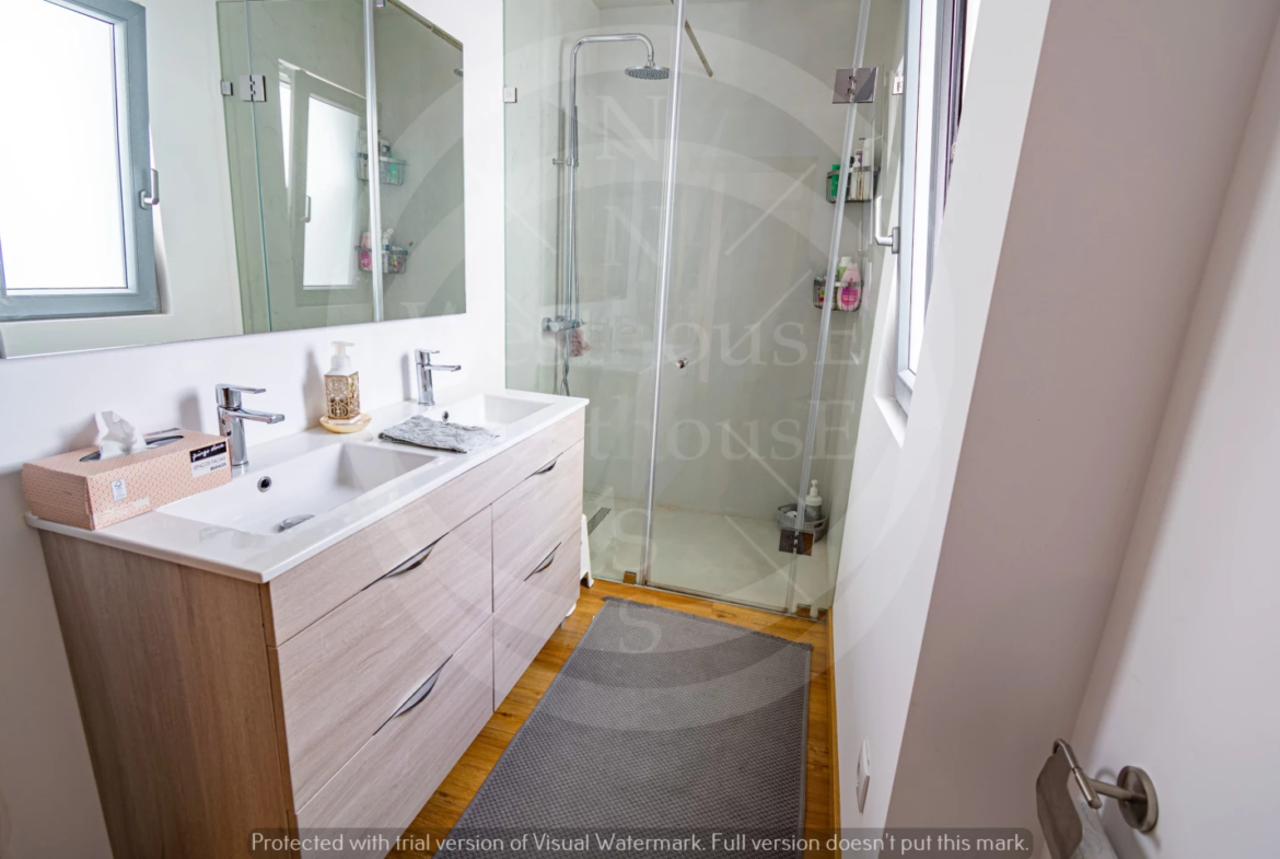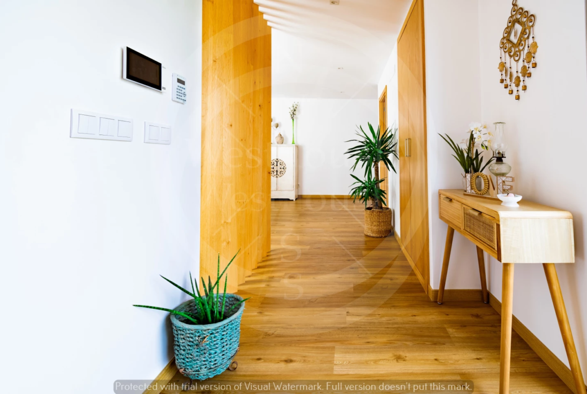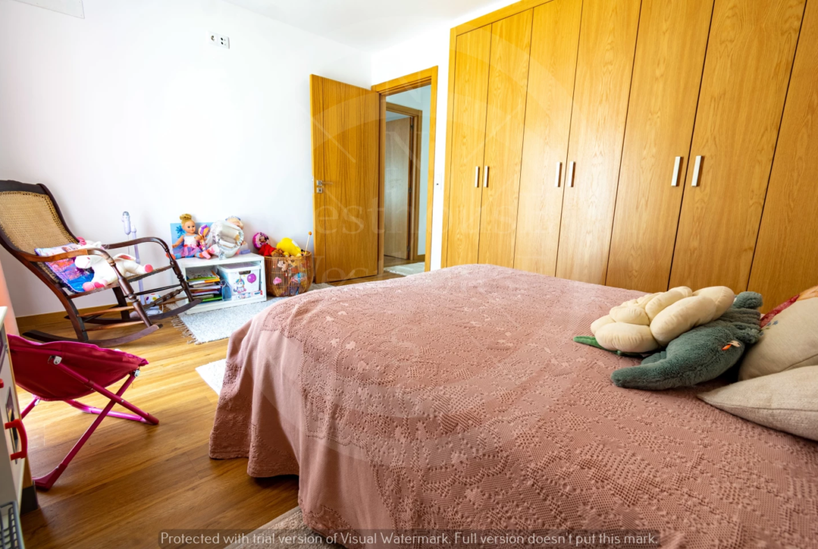 Paredes meias com a tranquila cidade de Torres Vedras, o imóvel – estreado recentemente – beneficia de uma ampla exposição solar; na frente, voltada a sudoeste, pontifica a fantástica vista onde, para além das famosas vinhas da região, se vislumbra o mar.