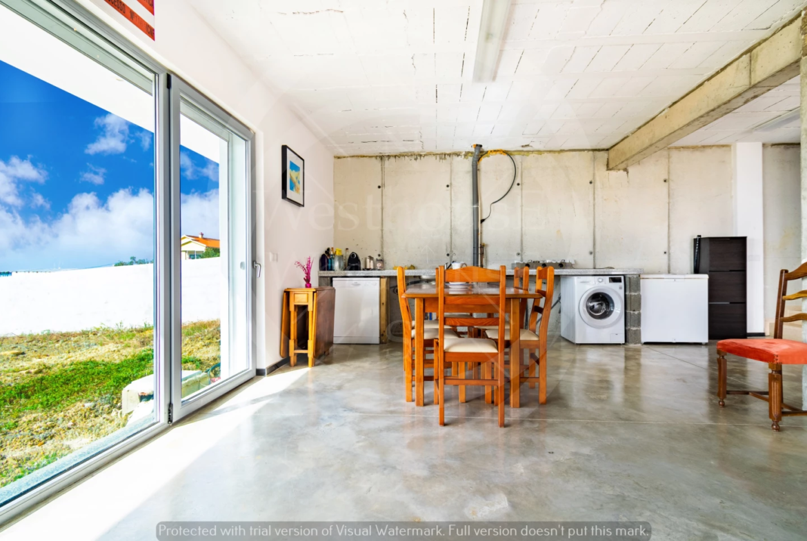 Também a garagem, para além das generosas áreas inclui um espaço de lazer e convívio, com um balcão para refeições e WC de apoio.